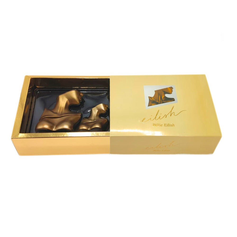 Experience the signature Amber Gourmand fragrance with the Eilish by Billie Eilish Gift Set. This luxurious set includes two elegantly sculpted bottles inspired by the female form, finished in striking gold tones. The scent combines sugared petals, creamy vanilla, and soft musks, creating a warm, sweet, and sophisticated aroma. Packaged in a matching gold-themed box, it’s the perfect gift for fragrance lovers or fans of Billie Eilish.
