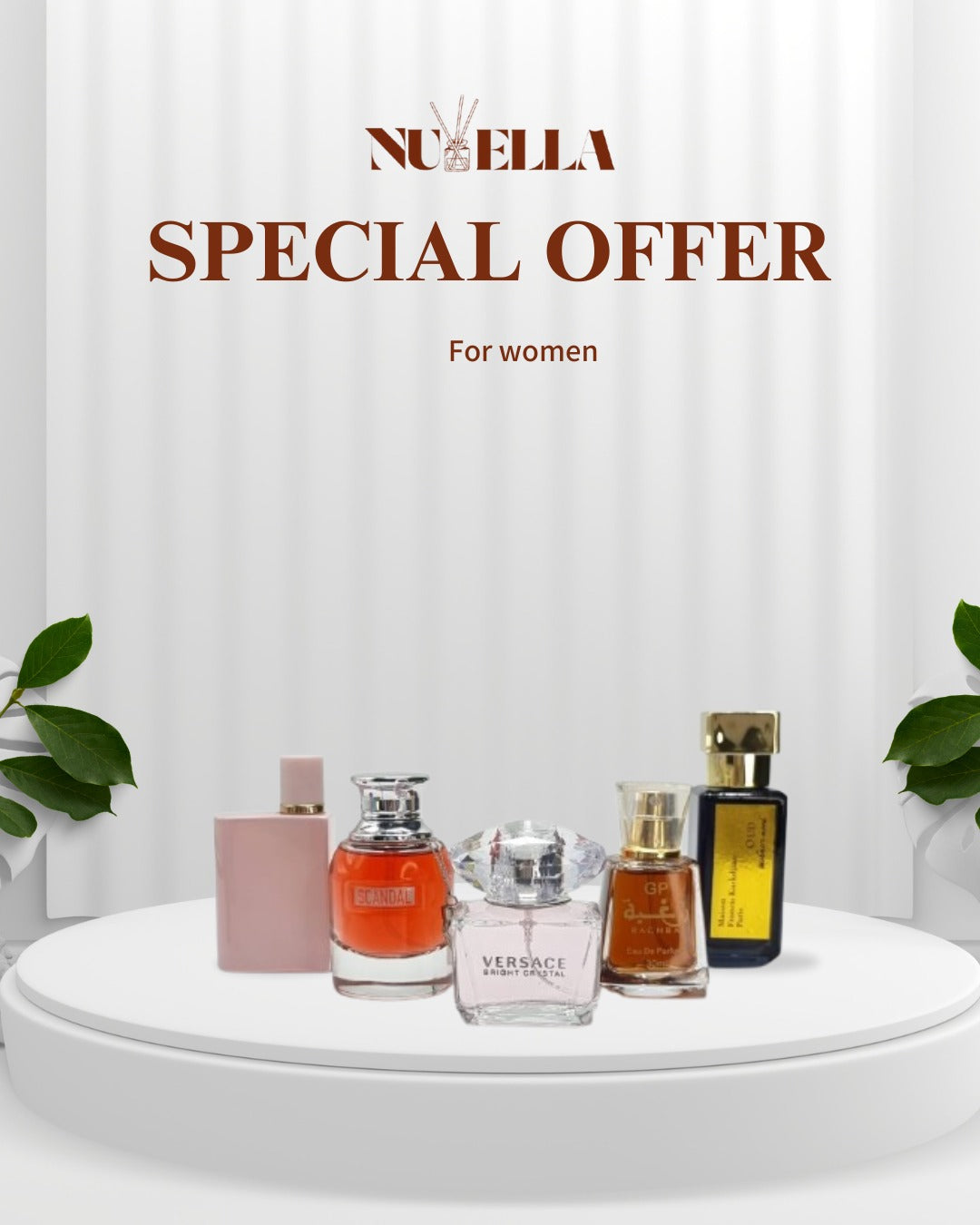 Burberry her 30ml + Scandal 30+ Versaci 30ml + Raghba 30ml + Mansira 30ml